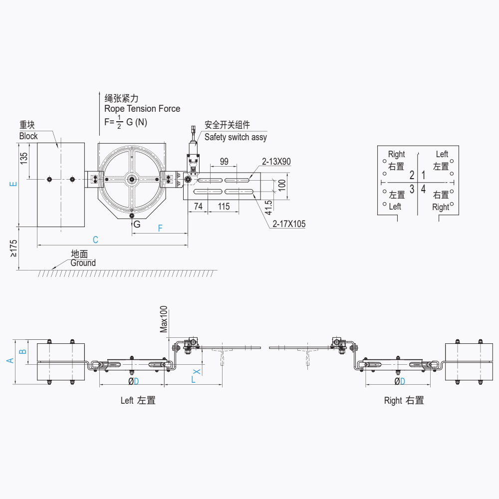 Детали безопасности подъемника устройства натяжения лифта LTD01 имеют конструкцию поворотного рычага, которую можно настроить в соответствии с фактическим состоянием использования и структурными требованиями защиты лифта от превышения скорости.