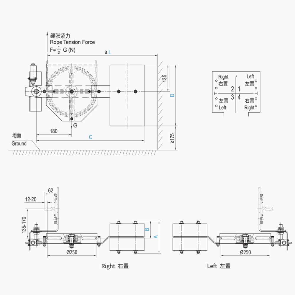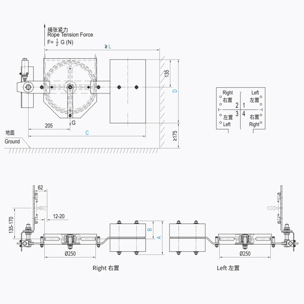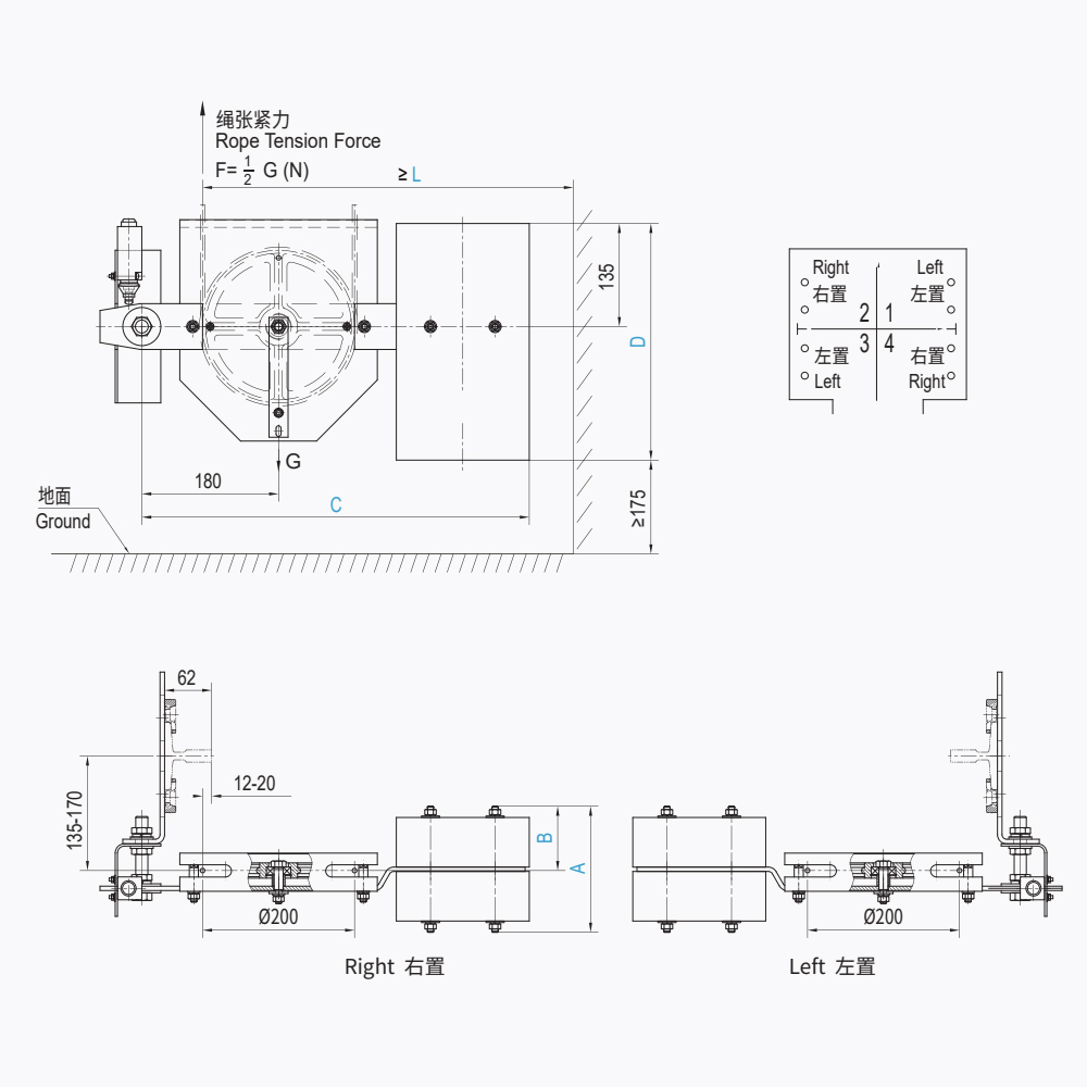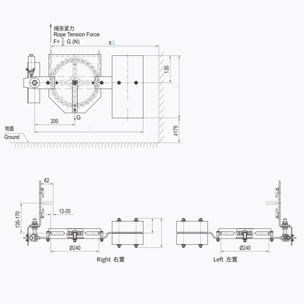 Натяжное устройство лифта LTD02 имеет конструкцию поворотного рычага и обеспечивает автоматическое натяжение троса через блок противовеса. Его преимуществами являются компактная конструкция, простота эксплуатации и удобство обслуживания. Натяжитель поворотного рычага LTD02 также отличается хорошей адаптивностью и регулируемостью. Его противовес можно регулировать в соответствии с конкретными потребностями лифта, а также для соответствия различным типам направляющих и спецификациям тросов.