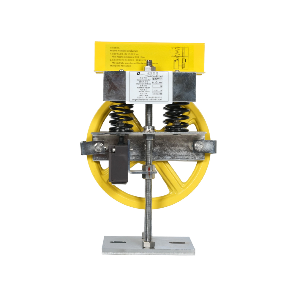 LTD07 подъемное натяжное устройство компонент безопасности лифта - это высокопроизводительное предохранительное устройство, разработанное специально для лифтовых систем. Он обеспечивает эксплуатационную стабильность за счет мониторинга и регулировки натяжения троса в режиме реального времени. Его основные компоненты включают монтажную раму, опорную раму, натяжной узел (включая фиксирующий стержень, натяжной шкив и защитную пластину с проволочным желобом) и узел сжатия пружины (включая направляющий вал, экструзионную пластину, пружину сжатия, предохранительный выключатель и рычаг). Это устройство использует упругость пружины для быстрого реагирования на провисание троса, эффективно поддерживая натяжение во время запуска, остановки и экстренного торможения. В соответствии с «Правилами безопасности при производстве и монтаже лифтов» устройство использует технологию пружинного сжатия и пыленепроницаемую конструкцию. Он отличается компактной конструкцией, простотой установки, а также сочетанием амортизирующих свойств и широкой совместимости, что делает его пригодным для различных лифтовых систем и значительно повышает безопасность и надежность.